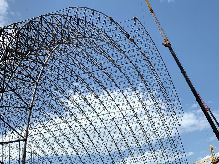 (2)网架加工前应对现场尺寸进行复测,确认无误后方可进行加工、安装;网架制作、运输、安装应遵守《空间网格结构技术规程》JGJ7-2010、《钢网架滁州螺栓球节点》JG/T 10-2009、《钢网架滁州螺栓球节点用高强度螺栓》 GB/T 16939-2016、《滁州钢结构滁州工程滁州施工规范》 GB50755-2012、《滁州钢结构滁州工程滁州施工质量验收标准》 GB50205-2020。